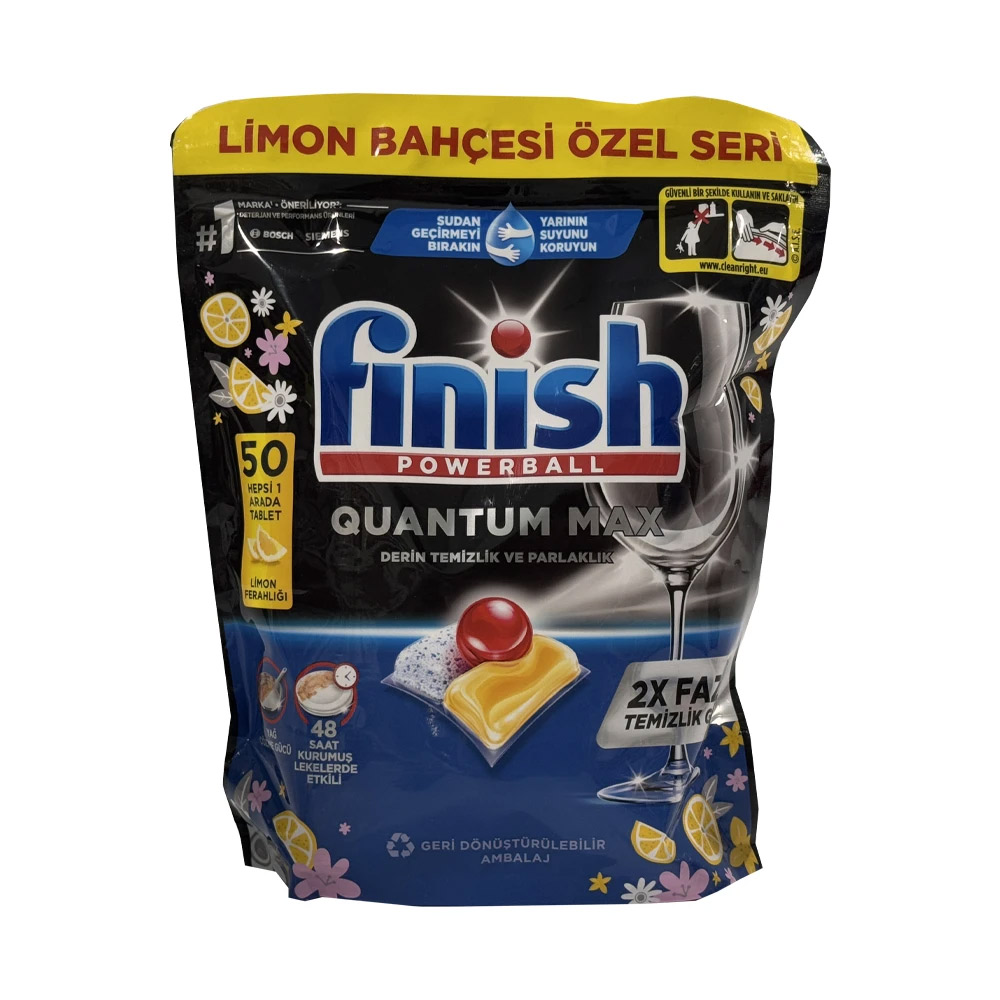 قرص ماشین ظرفشویی فینیش کوانتوم مکس لیمویی بسته ۵۰ عددی محصولی قدرتمند از برند معتبر Finish است که با فرمول سهگانهی خود، شستشویی کامل، درخشان و بدون لک را برای ظروف شما فراهم میکند. این قرصها با عملکردی چندمنظوره، چربیها و لکههای سخت غذا را حتی در دمای پایین از بین برده و درخشش خاصی به ظروف شیشهای و استیل میبخشند. رایحه دلپذیر لیمو، حس تازگی و تمیزی را در هر شستشو ایجاد میکند و از بوی نامطبوع داخل ماشین جلوگیری مینماید.